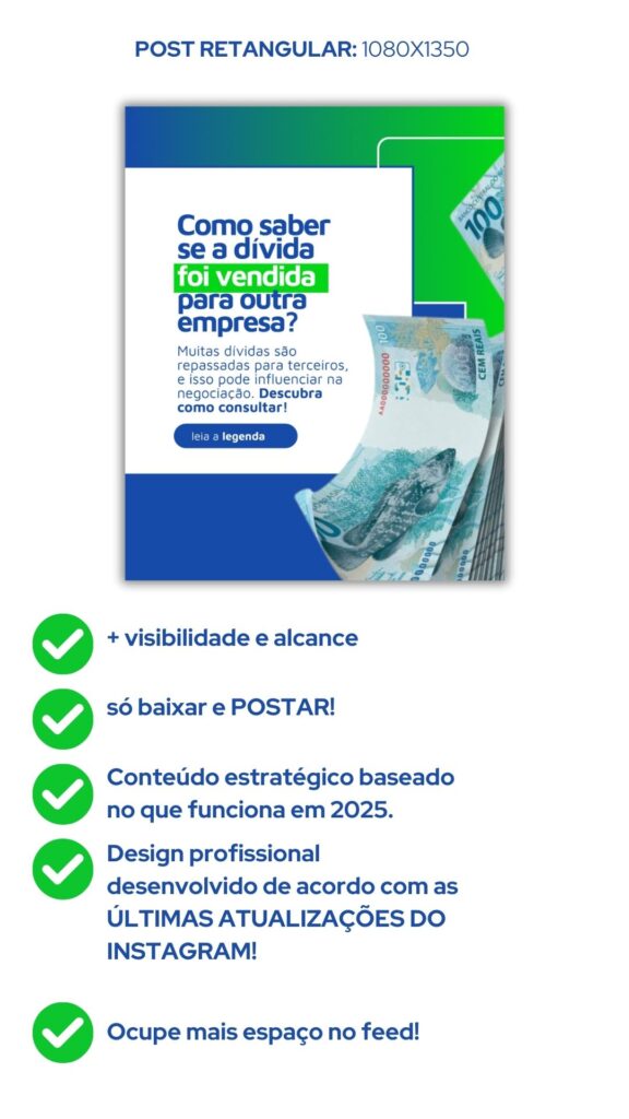 Devido a ÚLTIMA ATUALIZAÇÃO DO INSTAGRAM, só serão permitidos agora, POSTS EM FORMATO RETANGULAR e foi pensando nisso que já desenvolvemos tudo seguindo as dimensões corretas pra que além de toda a parte estratégica, você também possa usufruir de um FEED mais atraente e PROFISSIONAL.